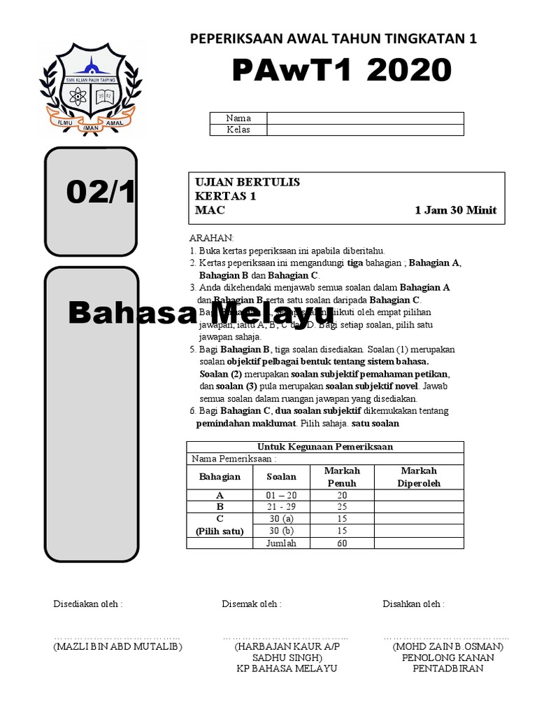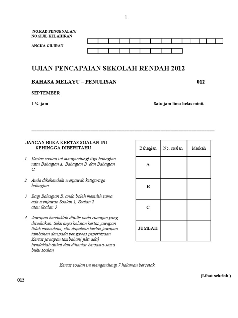 Kulit Muka Depan Kertas Exam Bm Pdf